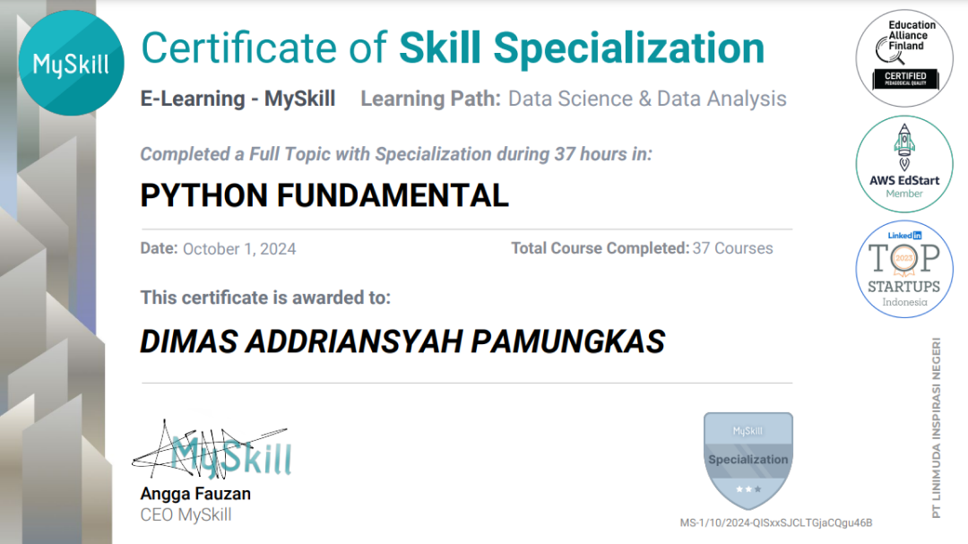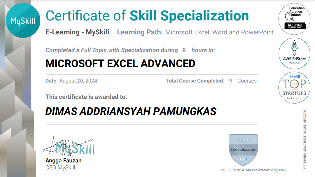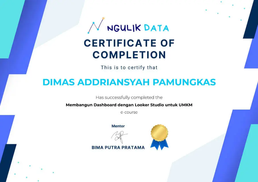Sertifikat ini saya peroleh untuk meningkatkan keterampilan dan memperluas pengalaman saya.